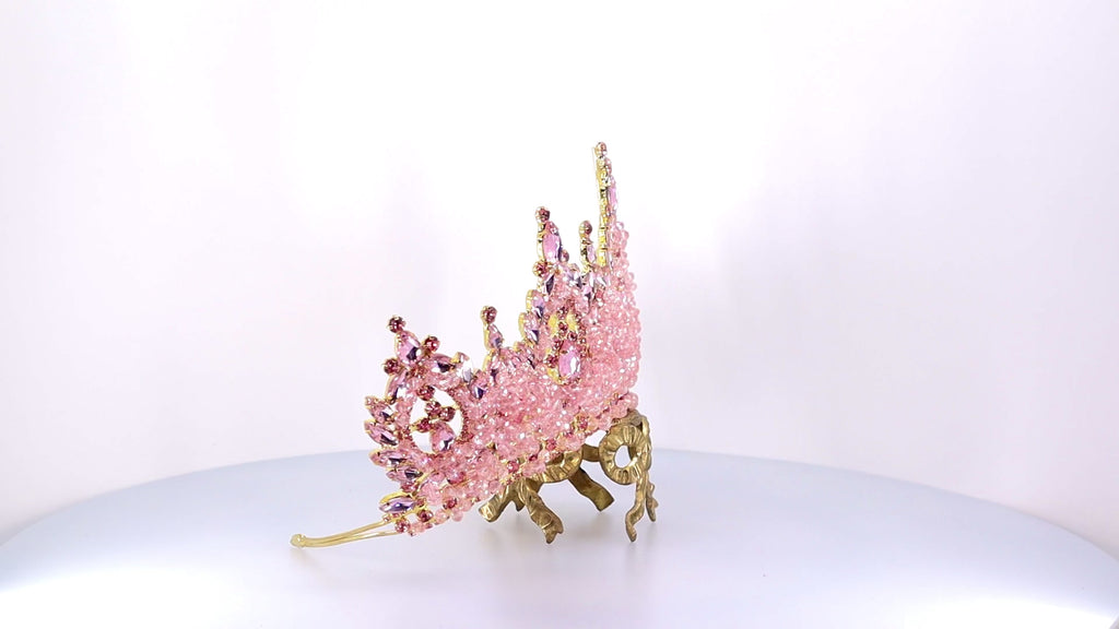 Enhance your quinceañera with the Handmade Adjustable Quinceañera Crown in Elegant Pink. This exquisite crown is carefully handcrafted to bring out the princess in you on your special day. The crown features stunning pink crystals that catch the light beautifully, making you the center of attention. Its adjustable band ensures a perfect fit, providing comfort throughout your celebration.