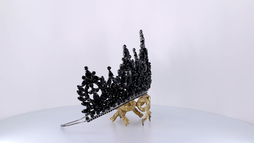 Make a bold statement with the Handmade Adjustable Quinceañera Crown in Luxurious Black. This elegant crown is meticulously handcrafted to ensure each piece is unique and of the highest quality. The crown is adorned with exquisite black crystals that shimmer and shine, perfect for adding a touch of sophistication to your quinceañera. Its adjustable band provides a secure and comfortable fit, making it ideal for long celebrations.
