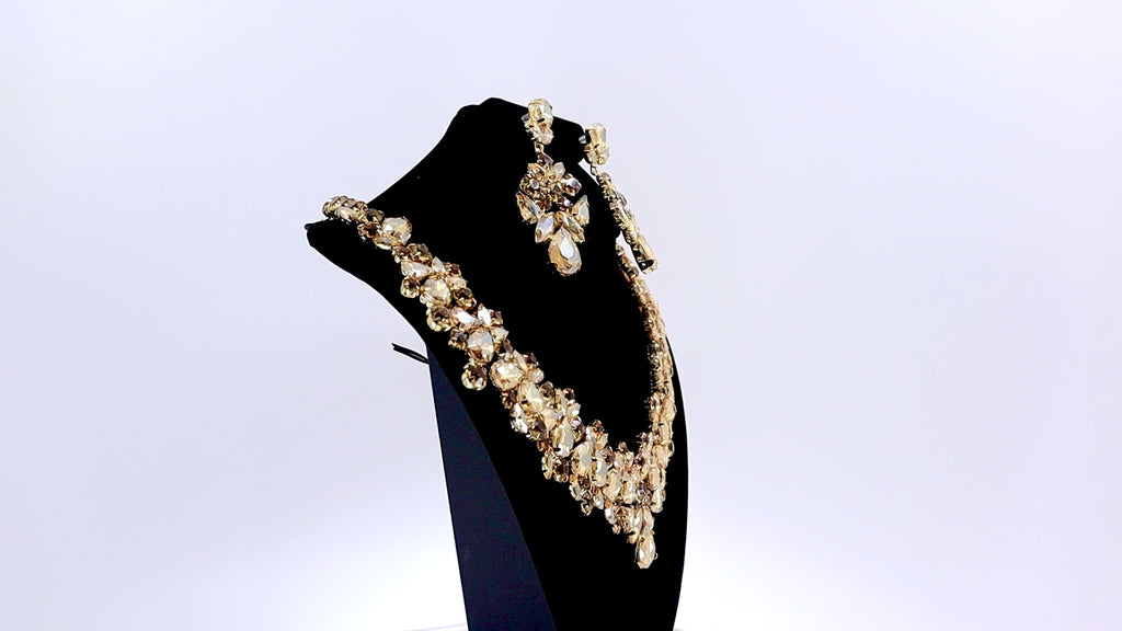 GOLD QUINCEANERA NECKLACE AND EARRINGS JEWELRY SET - DESSIRES