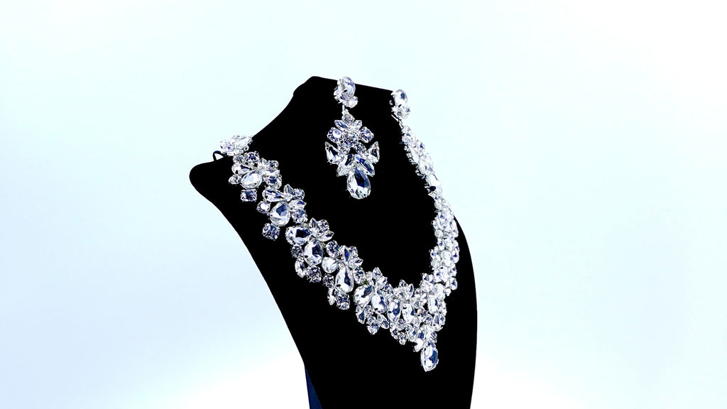 SILVER QUINCEANERA NECKLACE AND EARRINGS JEWELRY SET - DESSIRES